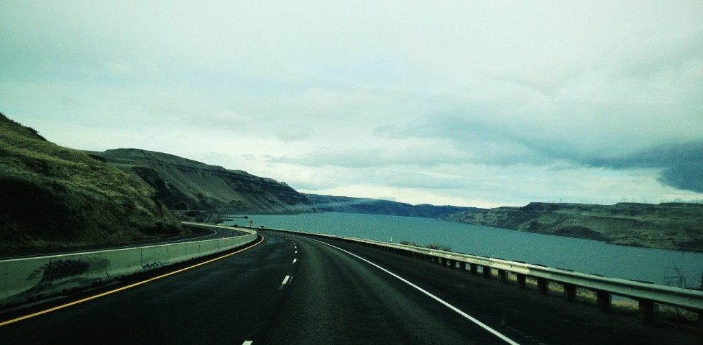 The Blue Mountains are notorious for snowstorms that pick up quickly and dump hard. Roads had not been plowed, and trucks were required to chain up. We slowed down to a crawl and followed the tracks in the snowy slush. There are some pretty steep downgrades, and we slid around a bit, but we made it through the worst of the storm, and it was raining by the time we went down “Cabbage Hill.” We stopped for some lunch outside of Pendleton, and I got a meatball sub at Subway. Of course, what I really only ate was a little sauce, cheese and nibbles of a meatball.